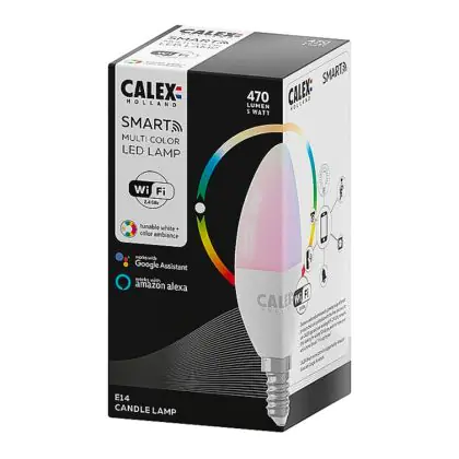 Calex Smart Tuya Wifi E14 Kerze 5W 470lm - 822-840 Abstimmbares Weiß | RGBW - Dimmbar - Ersatz für 40W
