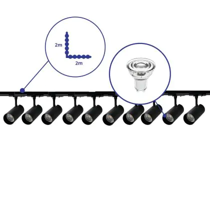 | Herstellername | Complete L shaped 1-Phase Track Set Black incl. 10x Spot fixture + GU10 2700K 3W Dim – 2 x 2 meter | |