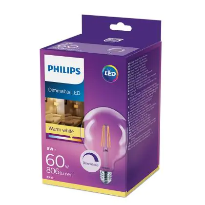 Philips Classic LED Globe E27 Fadenlampe Klar 120mm 8W 806lm - 827 Extra Warmweiß | Dimmbar - Ersatz für 60W