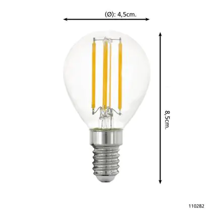 Cette ampoule rétro Eglo LED Boule E14 Filament Claire 2.2W 470lm - 830 | Remplacement 40W est l’alternative idéale pour la remplacement de votre ampoule classique de 40 W. La technologie LED intégrée vous offrira de nombreux avantages. Les ampoules à incandescence traditionnelles ont une durée de vie limitée. Cette alternative LED vous permettra de profiter d’un éclairage durable et fiable.
