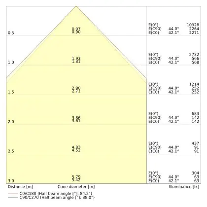 Le rapport lumen/watt (lm/W) indique l'efficacité avec laquelle une source lumineuse convertit l'énergie en lumière. Pour cela, on divise le nombre de lumens par le wattage. Plus le chiffre est élevé, plus le produit est efficace en termes de consommation d'énergie. L'éclairage LED présente un rapport lumen/watt nettement supérieur à celui de l'éclairage classique.                                             | Efficacité Lumineuse (Lm/W) | 126 |