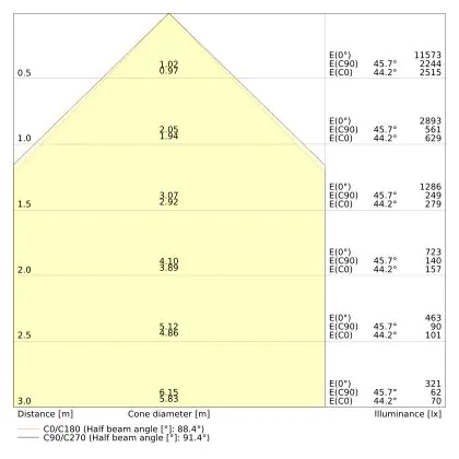 Le code couleur se compose de l'indice de rendu des couleurs (IRC) et de la température de couleur (Kelvin). Le premier chiffre indique le rendu des couleurs (1 = très mauvais rendu des couleurs, 9 = meilleure authenticité des couleurs). Le deuxième et troisième chiffre indiquent la température de la couleur. Exemple : Le code couleur "830" indique que la lampe a un bon rendu des couleurs (8) et une couleur de lumière blanche chaude (30 = 3000K). | Code Couleur | 930 Blanc Chaud |