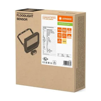 Description Ledvance Projecteur LED Aluminium Noir 41W 5500lm 100D - 830 | IP65 - Détecteur De Mouvement Et De Lumière - Symétrique