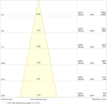Un angle de diffusion est également appelé angle de rayonnement et indique l'angle du faisceau lumineux provenant d'une source lumineuse. Plus l'angle de diffusion en degrés (D) est petit, plus le faisceau est étroit. Vous voulez en savoir plus? Alors lisez notre blog.                                             | Angle de Diffusion (degrés) | 20 |