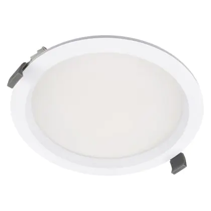 Les spots LED encastrables (aussi appelés Downlights) sont des solution éco-énergétiques permettant de remplacer les spots classiques équipés de technologie à fluorescence. Ce downlight Ledvance Spot Encastrable LED Comfort Opale Aluminium Blanc 30W 3600lm 100D - 930 Blanc Chaud | Diamètre 200mm - IP44 - Meilleur Rendu De Couleur - Dali Dimmable est conçu pour remplacer un spot classique de 2x26. La consommation de ce downlight LED est considérablement plus faible qu’un luminaire classique, à savoir, seulement 30 watts. Une économie d’énergie sans compromettre la qualité de la lumière. Le flux lumineux est de 3600 lumens. La lumière de ce downlight LED est diffusé à 100 degrés et offre un bon rendu des couleurs. La durée de vie moyenne de ce luminaire LED est de 100000 heures.
