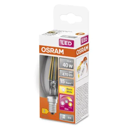 Description Osram Superstar Classic LED E14 Bougie Filament Claire 4W 470lm - 822-827 Dim To Warm | Dimmable - Remplacement 40W