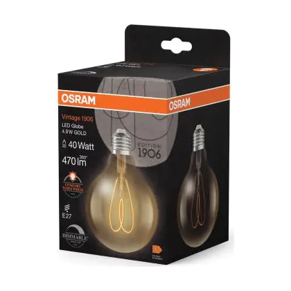 Cette ampoule Osram Vintage 1906 LED E27 Globe Filament Dorée 4.9W 470lm - 922 | Meilleur Rendu De Couleur - Dimmable - Remplacement 40W est l’alternative idéale pour la remplacement de votre ampoule classique de 40 W. La technologie LED intégrée vous offrira de nombreux avantages. Les ampoules à incandescence traditionnelles ont une durée de vie limitée. Cette alternative LED vous permettra de profiter d’un éclairage durable et fiable.