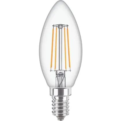 Description Philips Corepro LED Bougie E14 Filament Claire 4.3W 470lm - 827 | Remplacement 40W