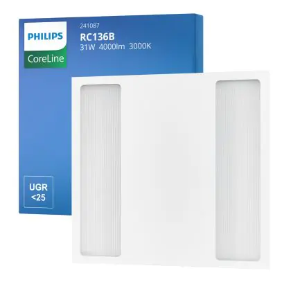 Les panneaux LED sont des solutions éco-énergétiques permettant de remplacer les panneaux classiques équipés de tubes fluorescents. Ce panneau Philips Dalle LED Coreline RC136B 22/31W 2800-4000lm - 830 | 60x60cm - UGR est conçu pour remplacer une dalle classique de 4x18. La consommation de ce panneau LED est considérablement plus faible qu’un panneau classique, à savoir, seulement 31 watts. Une économie d’énergie sans compromettre la qualité de la lumière. Le flux lumineux est de 4000 lumens. La lumière de ce panneau LED est diffusé à degrés et offre un bon rendu des couleurs. La durée de vie moyenne de ce panneau LED est de 50000 heures.